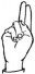 На ћирилици написано БОГИЊА БЕЛИЋ састоји се из 11 слова [?]. Исписано ћириличном једноручном азбуком за глувонеме: